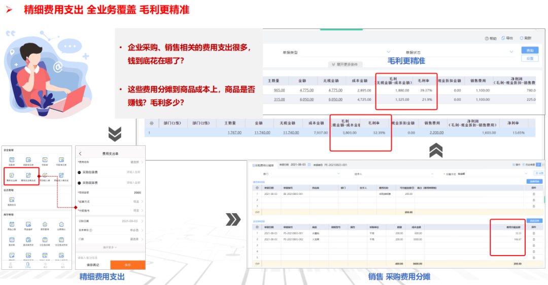 (1)打通進(jìn)銷存后,可以填單分?jǐn)偵唐凡少彮h(huán)節(jié)費(fèi)用,一鍵傳輸財(cái)務(wù),自動做賬;