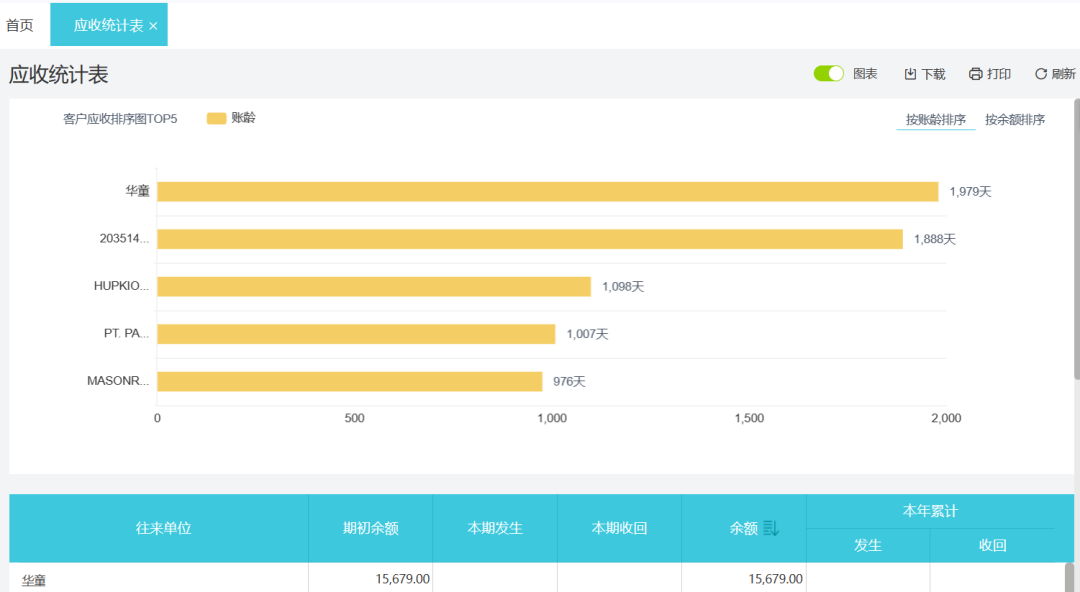通過軟件內(nèi)的圖表,再配合對客戶回款的催收制度,比如應(yīng)收賬款賬期3個(gè)月,超過3個(gè)月的為逾期,就可以根據(jù)欠款情況對具體負(fù)責(zé)人進(jìn)行催欠提醒了。