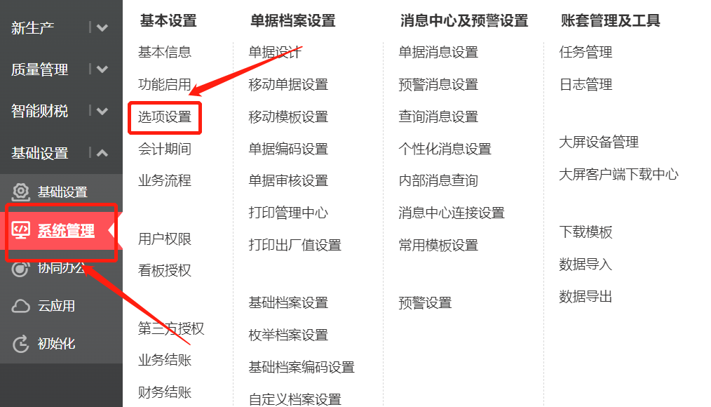 1、依次點擊【系統(tǒng)管理】-【選項設置】-【憑證接口】,把【存貨盤點生成憑證的單據(jù)】選成【其他出入庫單】